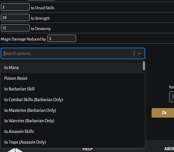 제가 판매하고자 하는 옵션은 +2 드루이드 스킬, +26 힘, +12 민첩, 3 마법 대미지 감소입니다.